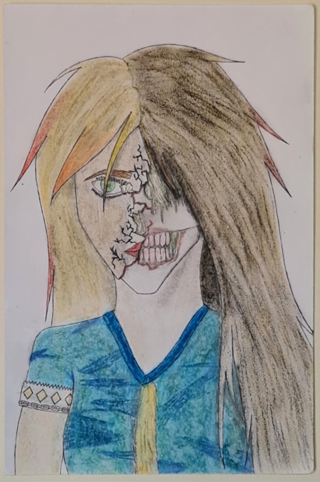 Now some keen eyes may have noticed something odd about a lot of the drawings I have included on this page, and I may as well note this as its fairly important to me. Now, on my website I’ve made it clear that I want to be vulnerable with no filter, but that doesn’t mean I wont protect my privacy. So on that front, you will have noticed that there are some changes made to each image, and that would be that I have removed the signatures and names from all of them. When I was young I would sign each drawing with my full name and signature to make them more personal to me, this however backfired on me as years later I came out as transgender and am now going by the name Rose. So to put a long paragraph short, I erased my deadname from these images to protect my privacy. I’m not sure if its easy to find my deadname on the internet right now, but I at least want to make it harder for others to find it out, this is a personal preference of mine and I would like to see it being treated with the same respect as someone changing their last name due to marriage, with that side note out of the way, its time to move onto more of my past art.